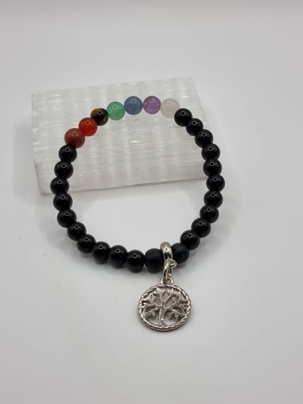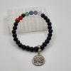 Pulseira de pedras naturais com (obsidiana, pedra vulcânica, jaspe vermelho, cornalina, olho de tigre, quartzo verde, quartzo azul, ametista e quartzo branco), em formato esfera, com fio de silicone.