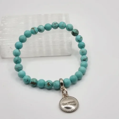 Pulseira de pedras naturais em formato esfera de 6mm, com fio de silicone.