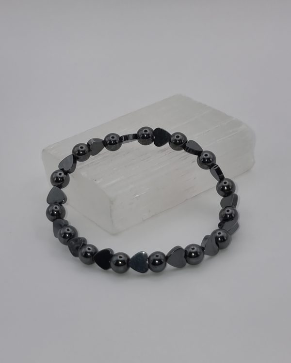 Pulseira de pedra natural em formato de esfera e de coração de 6mm, com fio de silicone